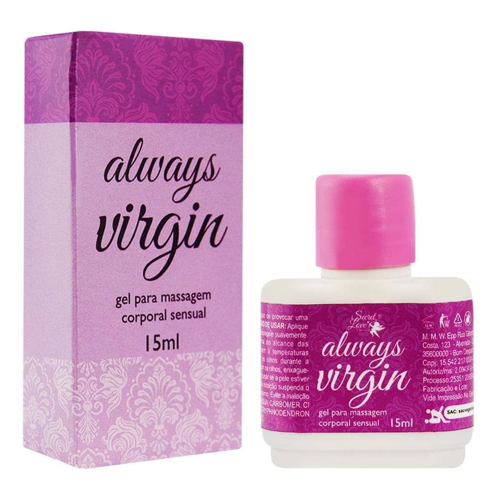 O Always Virgin é um gel adstringente íntimo desenvolvido para proporcionar a sensação de estreitamento do canal vaginal. Ideal para casais que desejam reviver a emoção e intensidade da “primeira vez”, sua fórmula atua temporariamente nos ductos de lubrificação, reduzindo o excesso e aumentando o atrito durante a relação.